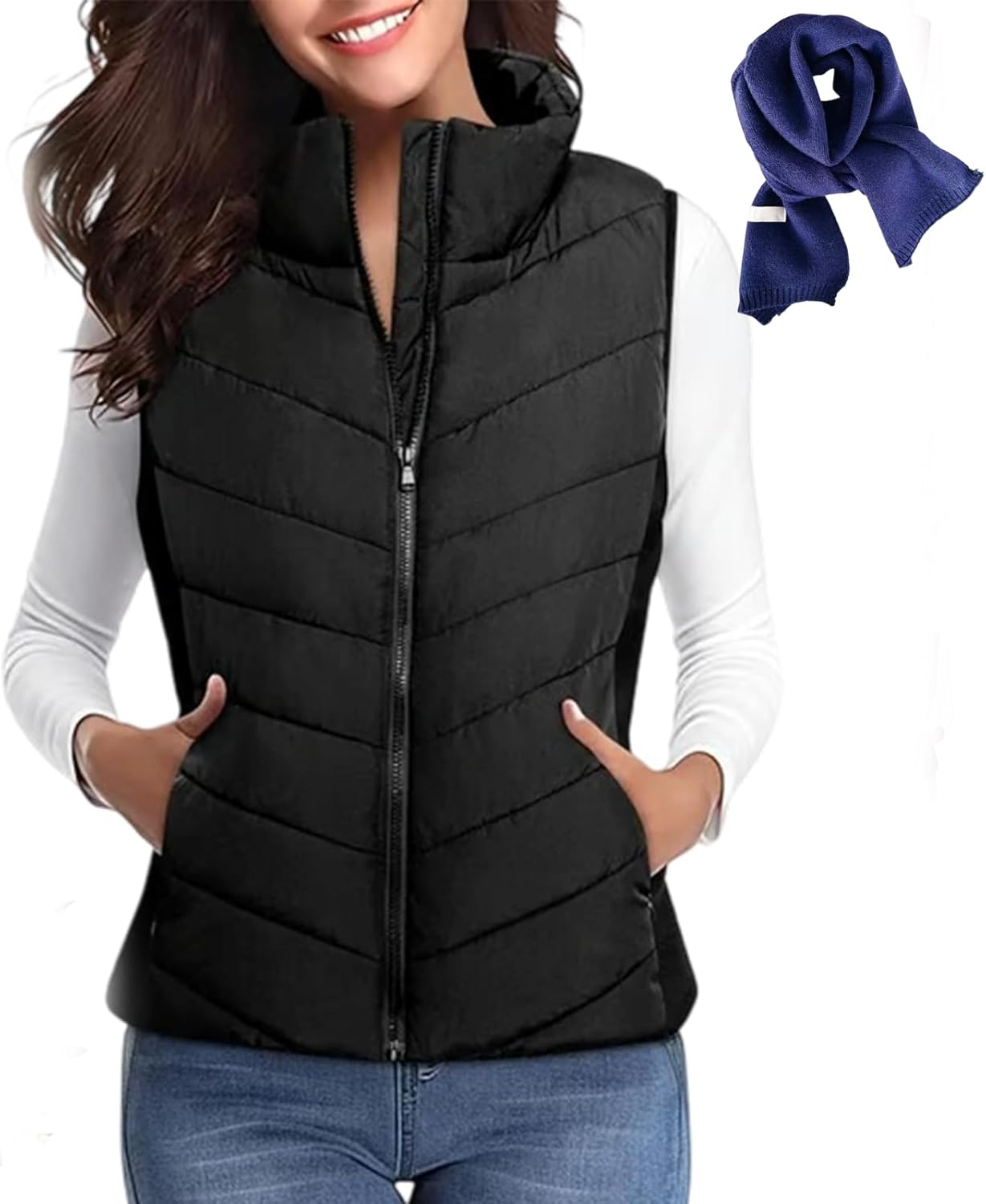 Women’s Cropped Reversible Puffer Vest Sherpa Fleece Vest Zip Up Jacket Sleeveless Cozy Outerwear Waistcoat