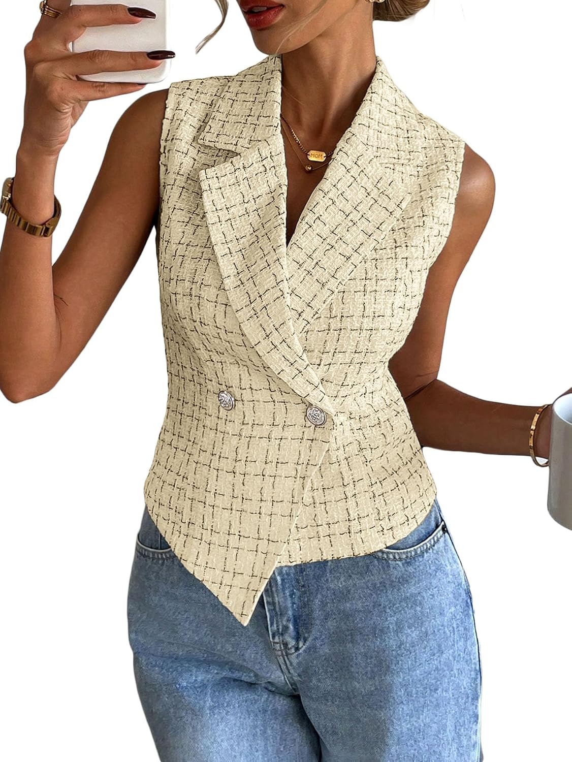 Belle Poque Women’s Vintage Waistcoat Vest Suit Vests Double Breasted Sleeveless Blazer Coats