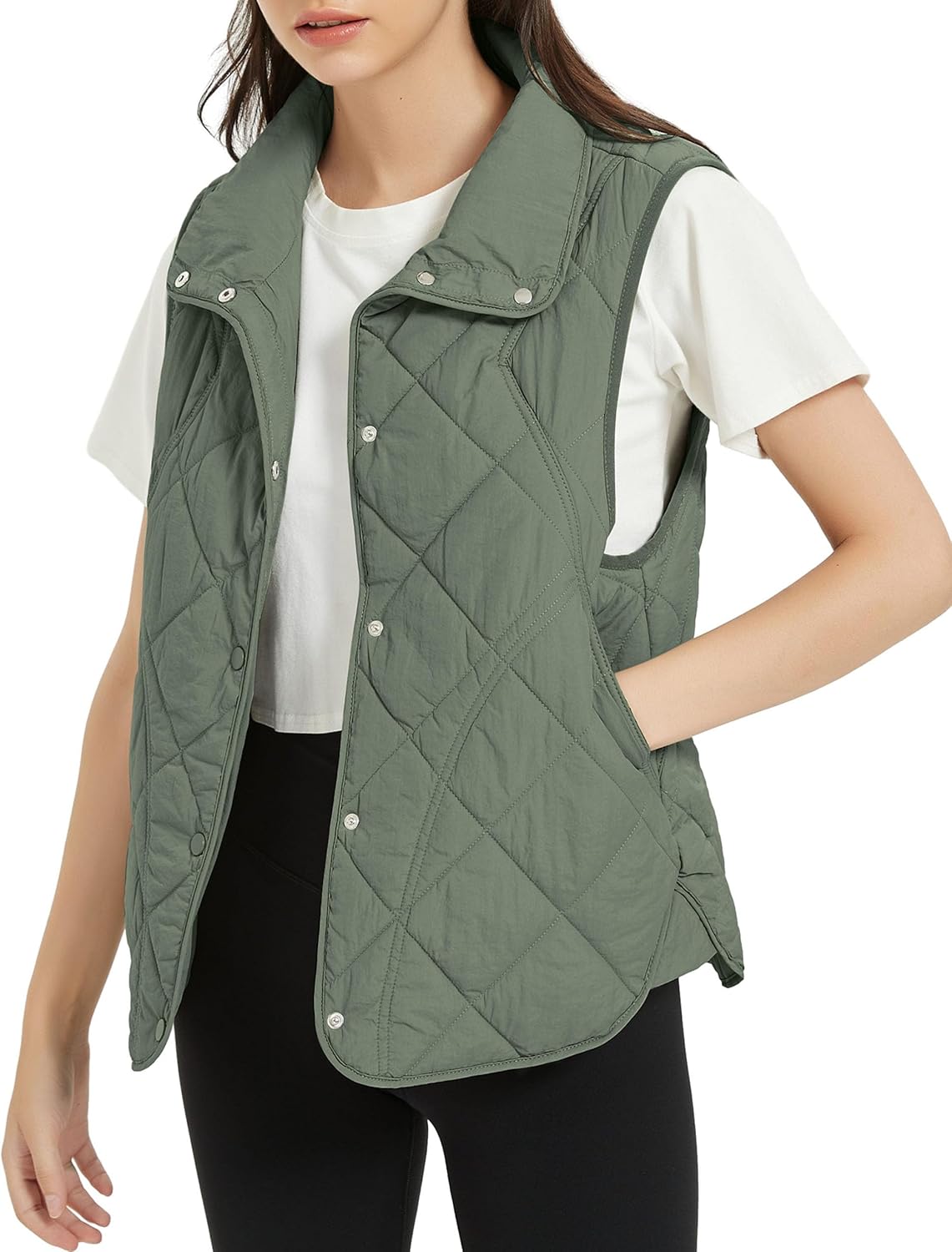Flygo Puffer Vest Women Cropped Vest Zip Up Stand Collar Sleeveless Lightweight Winter Down Vests Jacket