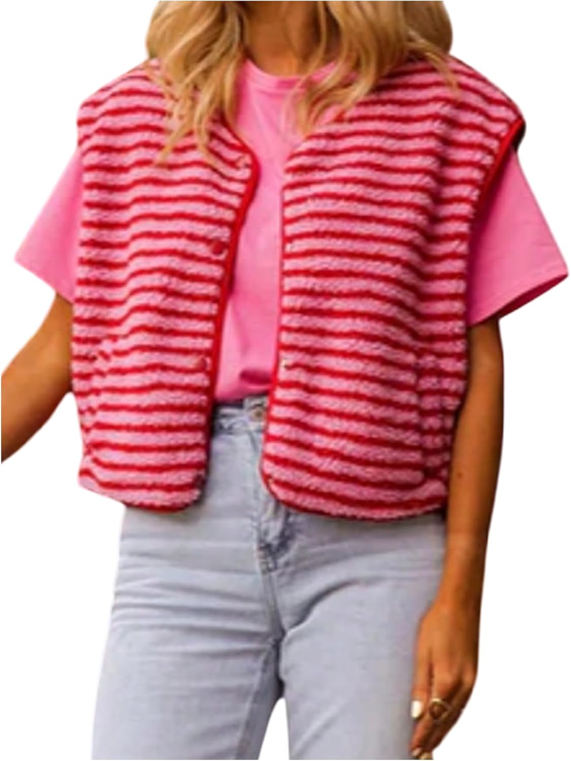 GORGLITTER Women’s Fuzzy Vest Outerwear Trendy Fall Fleece Sherpa Vest Sleeveless Old Money Coat Vests
