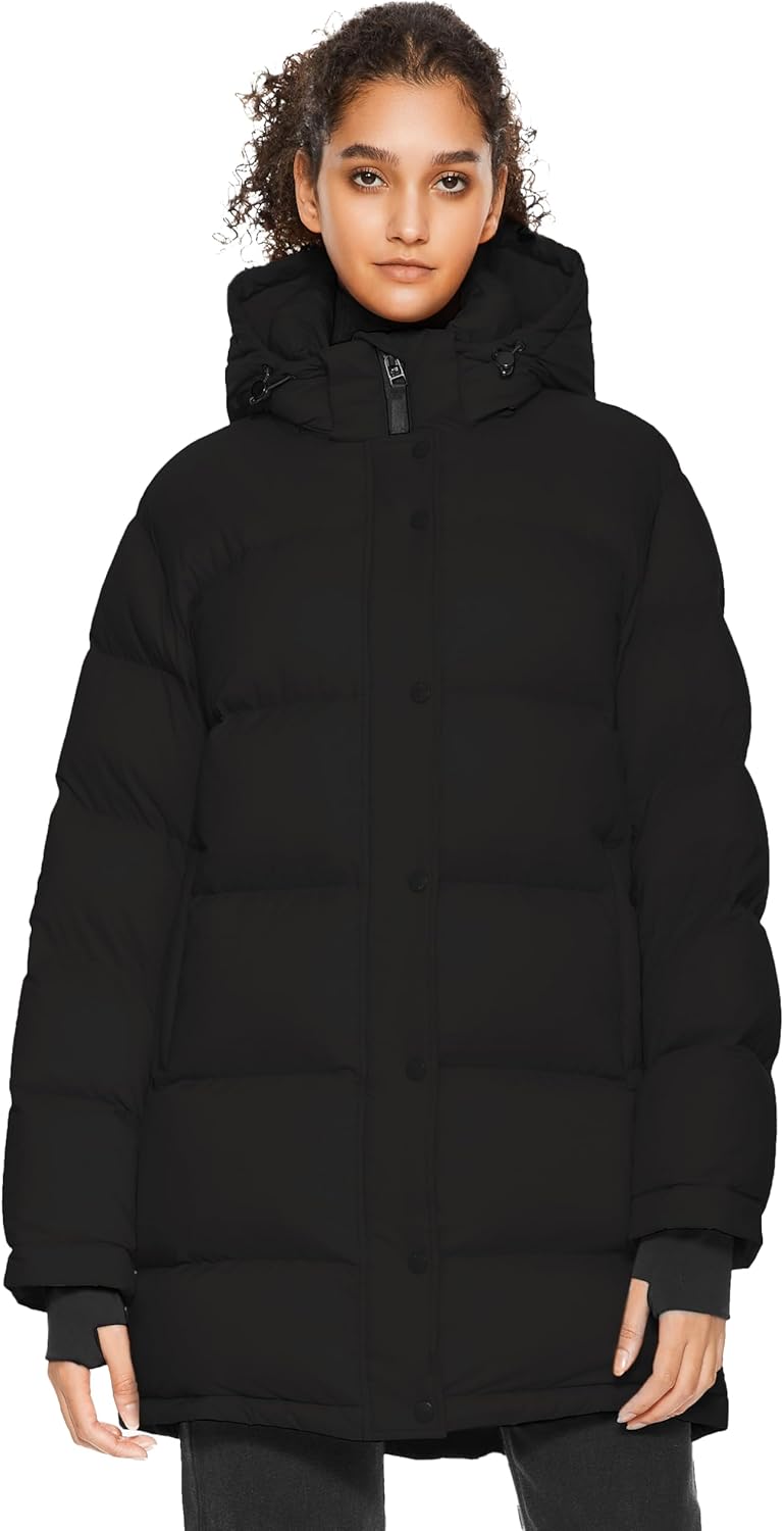 Orolay Women’s Mid-Length Thickened Jacket with Detachable Hood Stand Collar Winter Puffer Jacket
