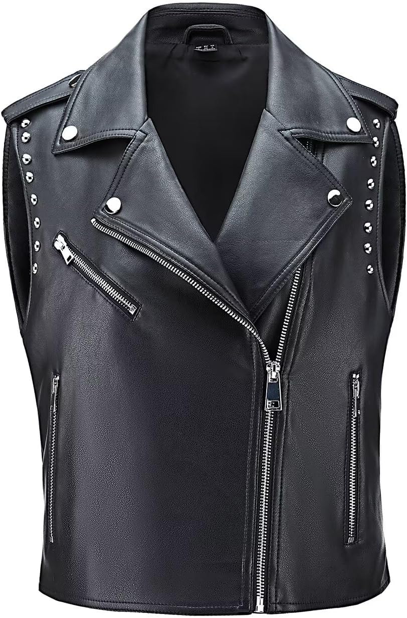 DIASHINY Women Faux Leather Vest Rivet Biker Vest Pu Leather Motorcycle Waistcoat