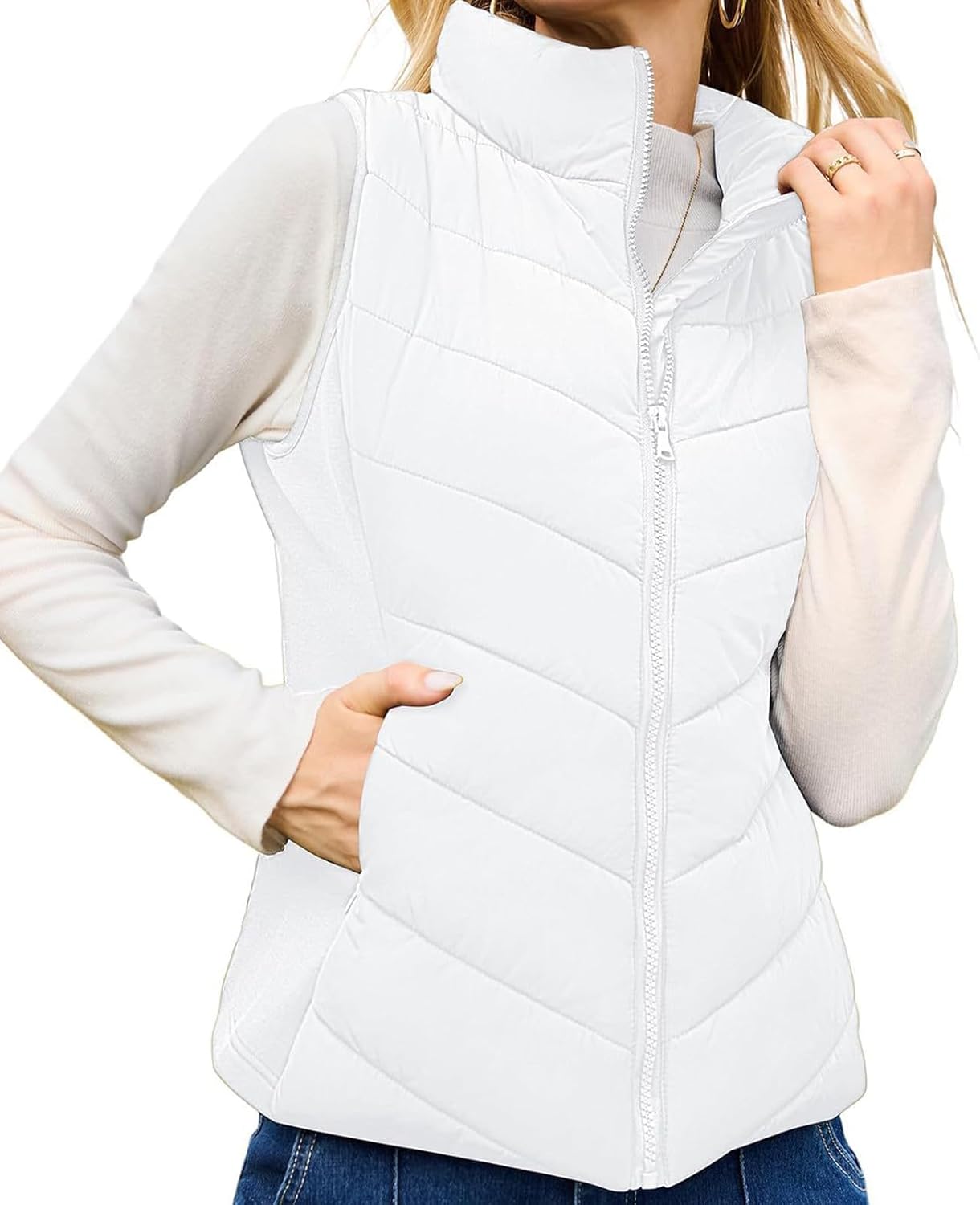 Zeagoo Puffer Vest Women Lightweight Fall Sleeveless Jackets Zip Up Puffy Outerwear Quilted Gilet Winter Pocket Outfits