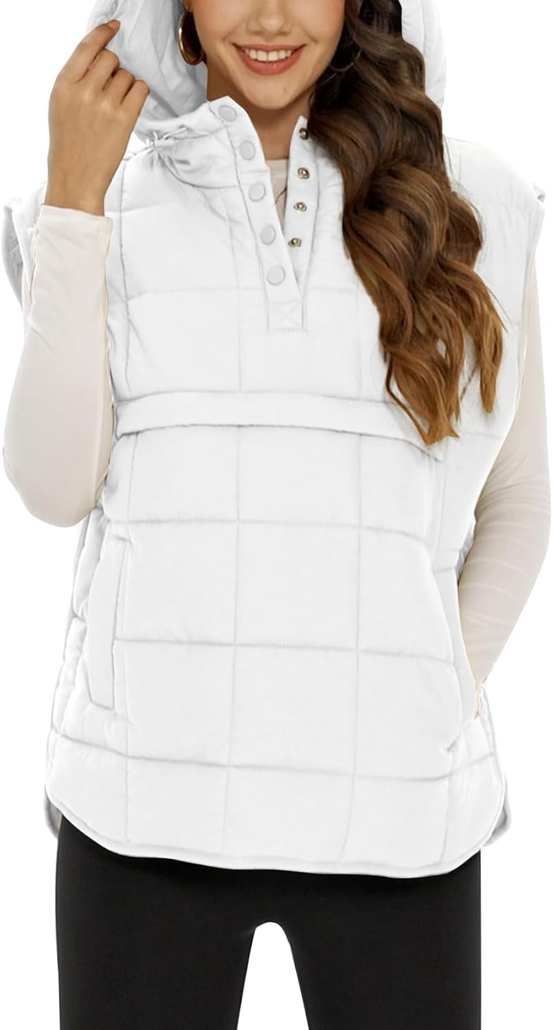 VAOYIU Womens Quilted Puffer Vest Stand Collar Half Zip Sleeveless Padded Jacket Hoodie Pullover Coat with Pockets
