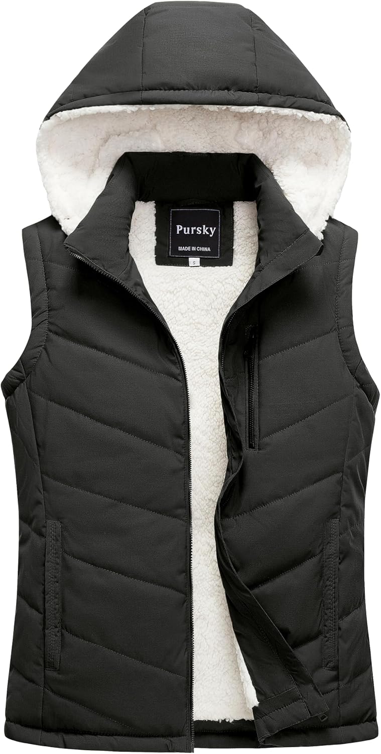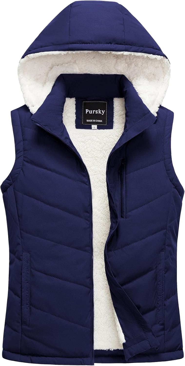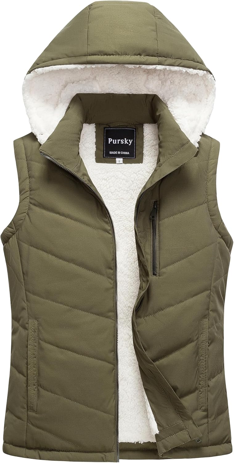 Long Puffer Vest for Women Sleeveless Hood Jackets Winter Warm Puffy Coats Removable Hood Lightweight Packable Vest