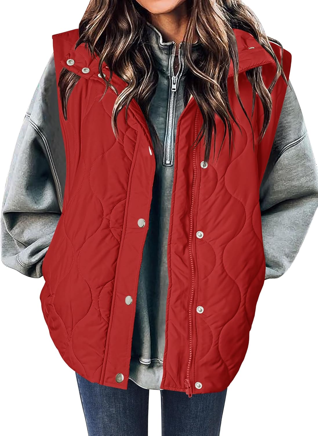Zeagoo Puffer Vest Women Sleeveless Quilted Jacket Lightweight Snap Zip Up Stand-up Collar Down with Pockets Outerwear