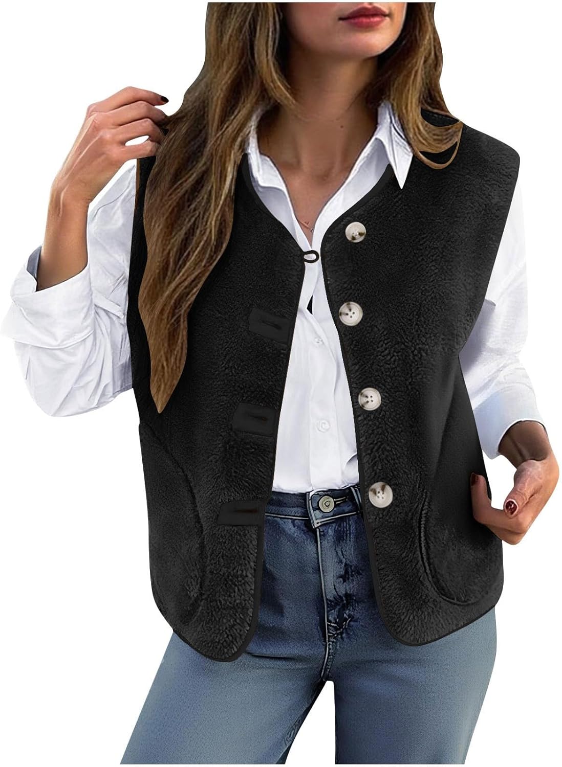 Women’s Faux Fur Vest Fuzzy Fleece Jacket Lapel Furry Jacket Open Front Cardigan Trendy Winter Coats Warm Vest