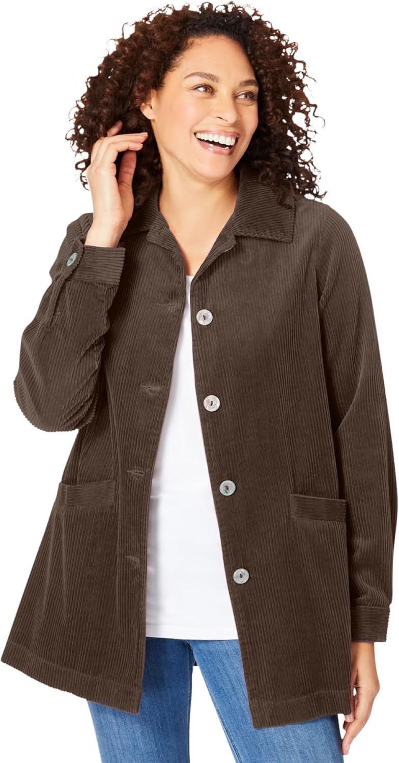 Woman Within Plus Size Pleat-Back Corduroy Jacket Long Oversized Barn Coat