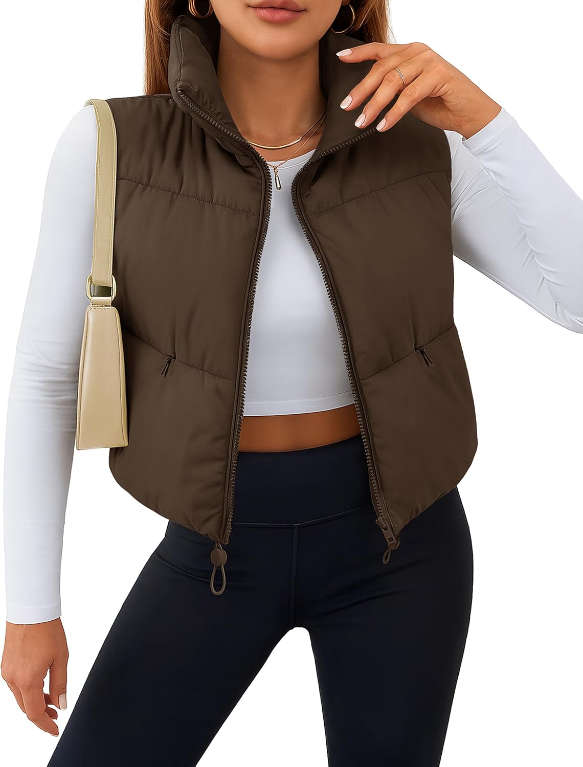 YUCOLEN Women’s Crop Puffer Vest Lightweight Warm Outerwear with Fashion Stand Collar Zip Up Padded Cropped Jacket Coat
