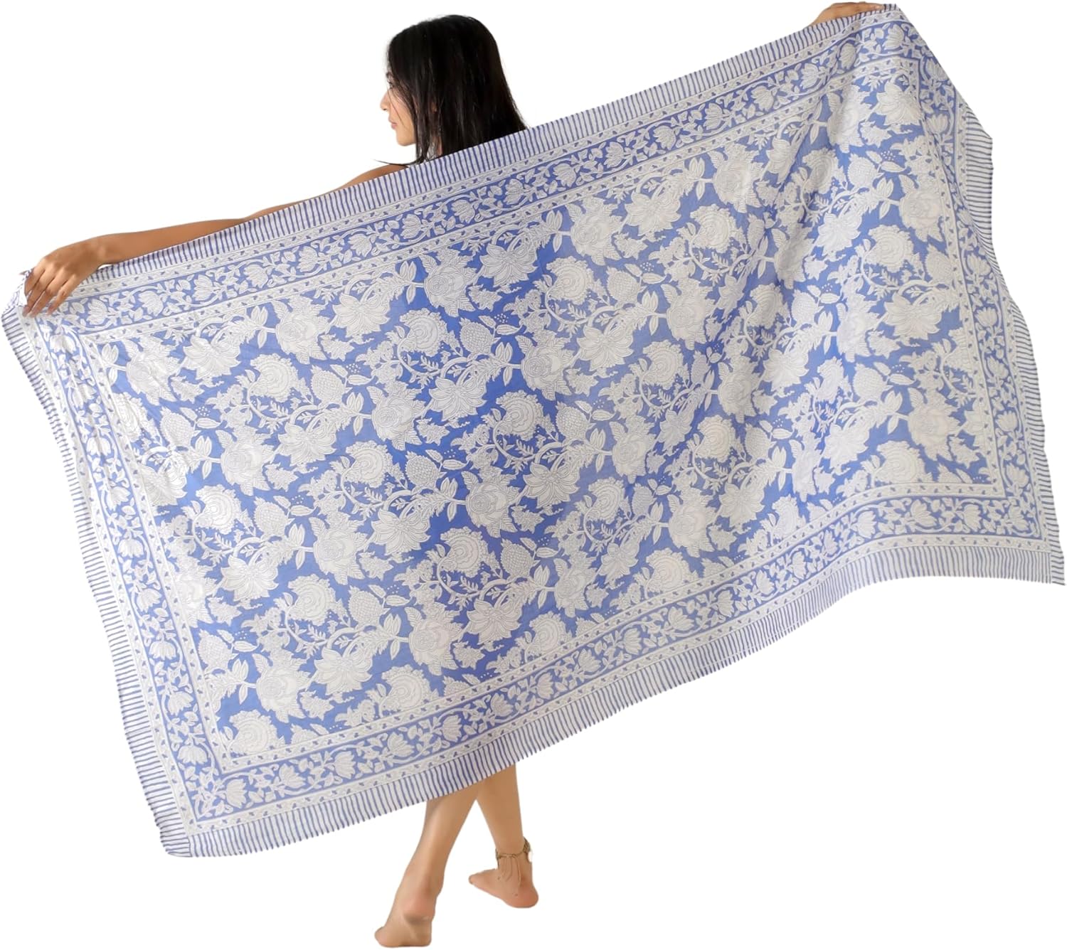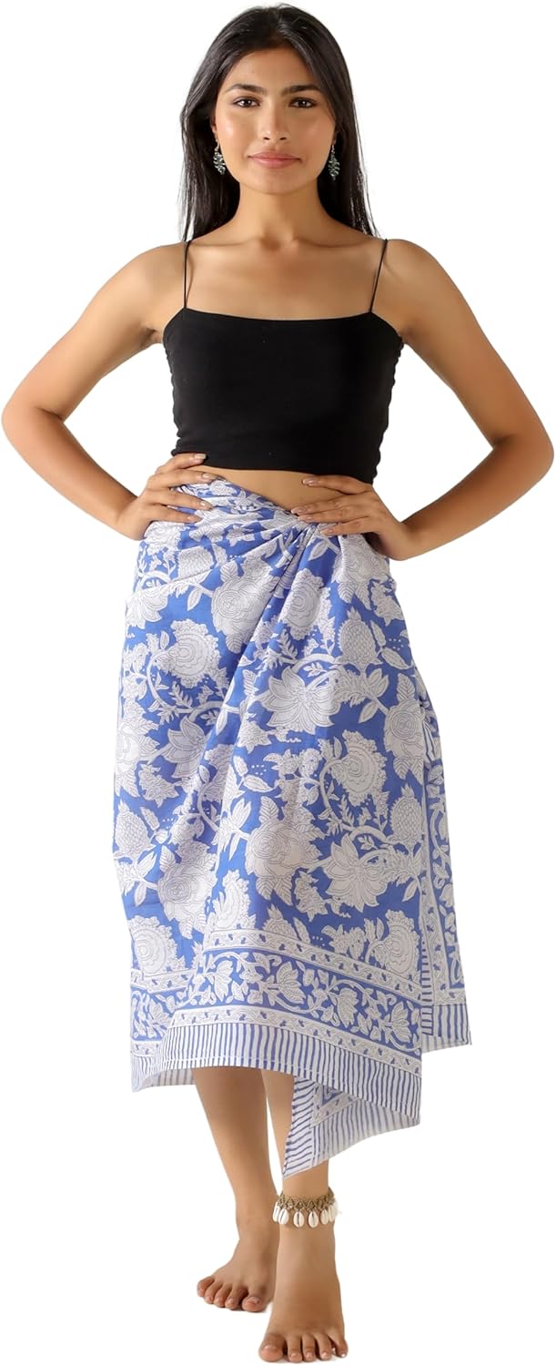 100% Cotton Sarong Coverup for Women Indian Hand Block Print Swimsuit Pareo Wrap Skirt Beach Bikini Cover Up Long (73″ x 43″)