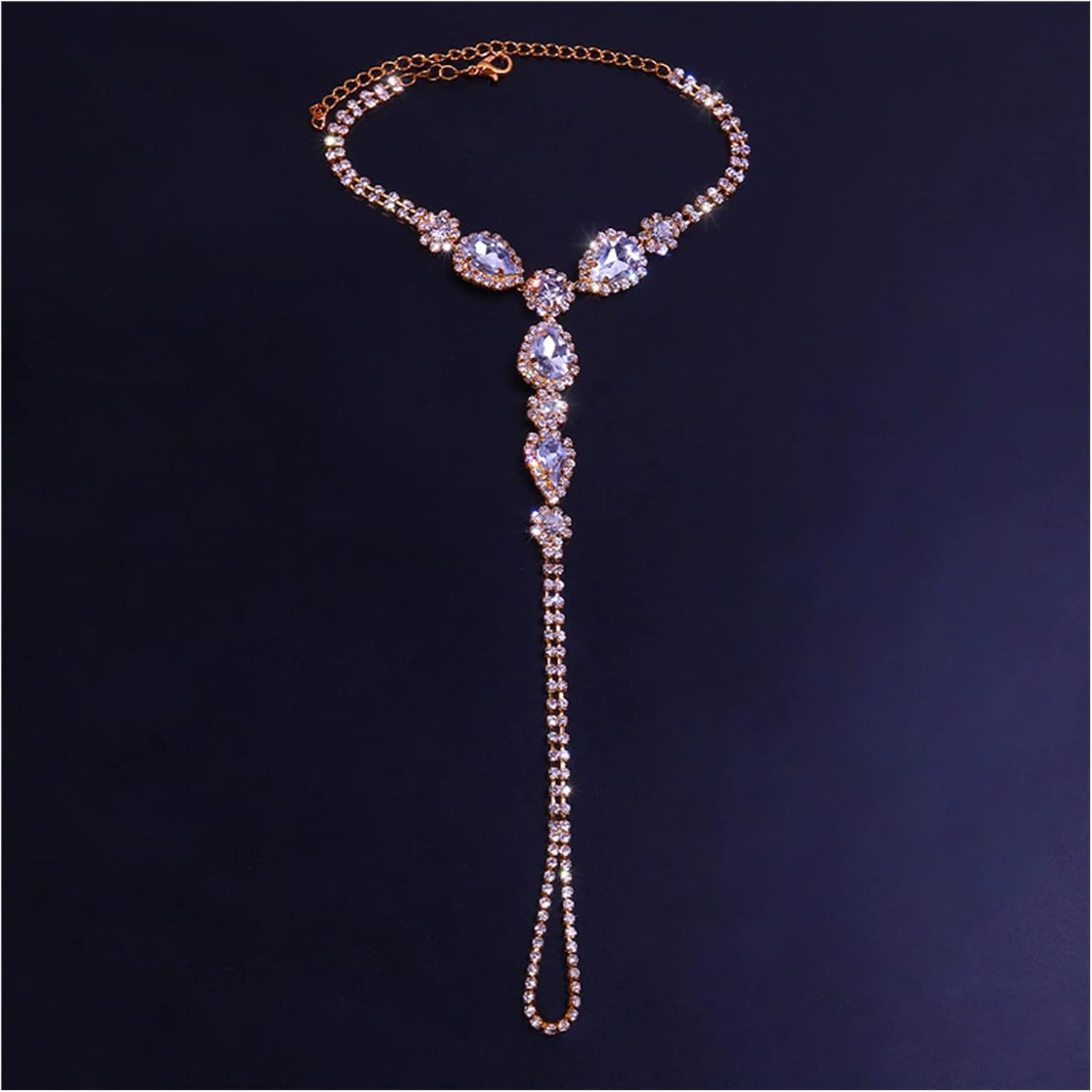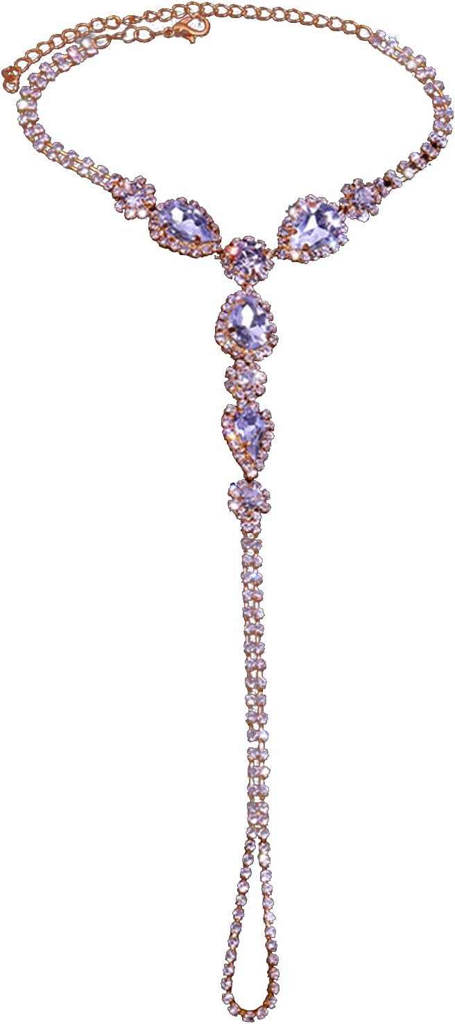 1Pair Summer Beach Rhinestone Barefoot Sandals Foot Chain with Toe Ring Crystal Anklets Bracelet Wedding Bridal Rhinestone Anklet Foot Chain Jewelry for Women