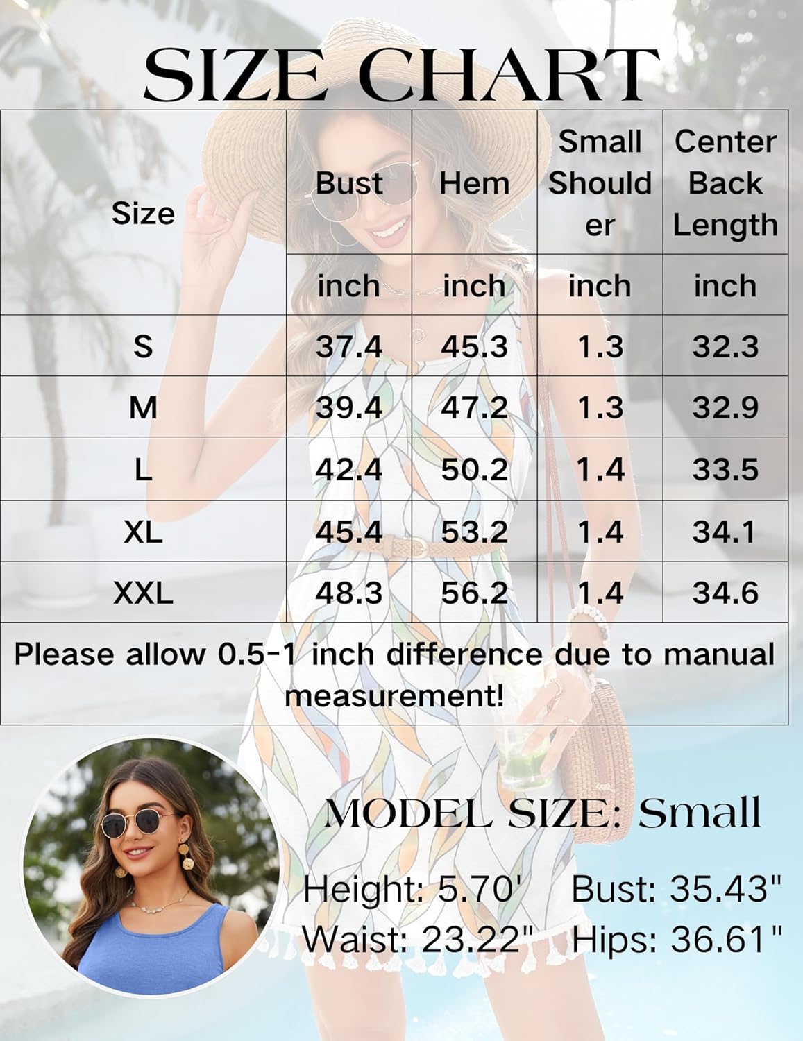 Customers find the swimsuit cover-up cute, comfortable, and lightweight, with soft fabric that can be worn as a dress. They like the tassels, with one customer specifically mentioning the bottom ones. The material quality and sizing receive mixed feedback – while some say the material is good, others find it thin, and while some say it’s true to size, others report it runs big and too long.