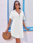 AI’MAGE Beach Cover Ups for Women Short Sleeve Swimsuit Coverup Button Down Bikini Bathing Suit Cover Up Dress Shirt
