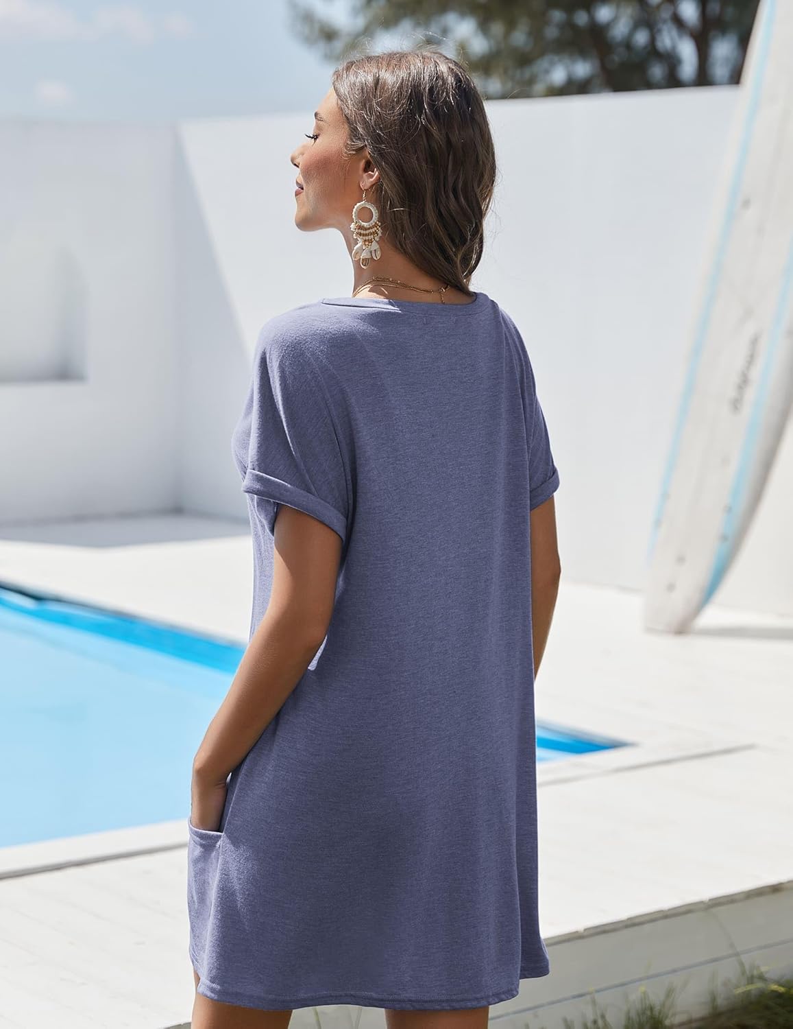 AI’MAGE Swimsuit Coverup for Women 2025 Bathing Suit Cover Up Short Sleeve Swimwear Bikini Beach T-Shirt with Pockets