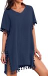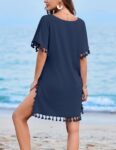 AI’MAGE Women Bathing Suit Cover Up Tassel Swimsuit Coverup Short Sleeve Beach Cover Ups Dress V Neck Beach Wear S-3XL