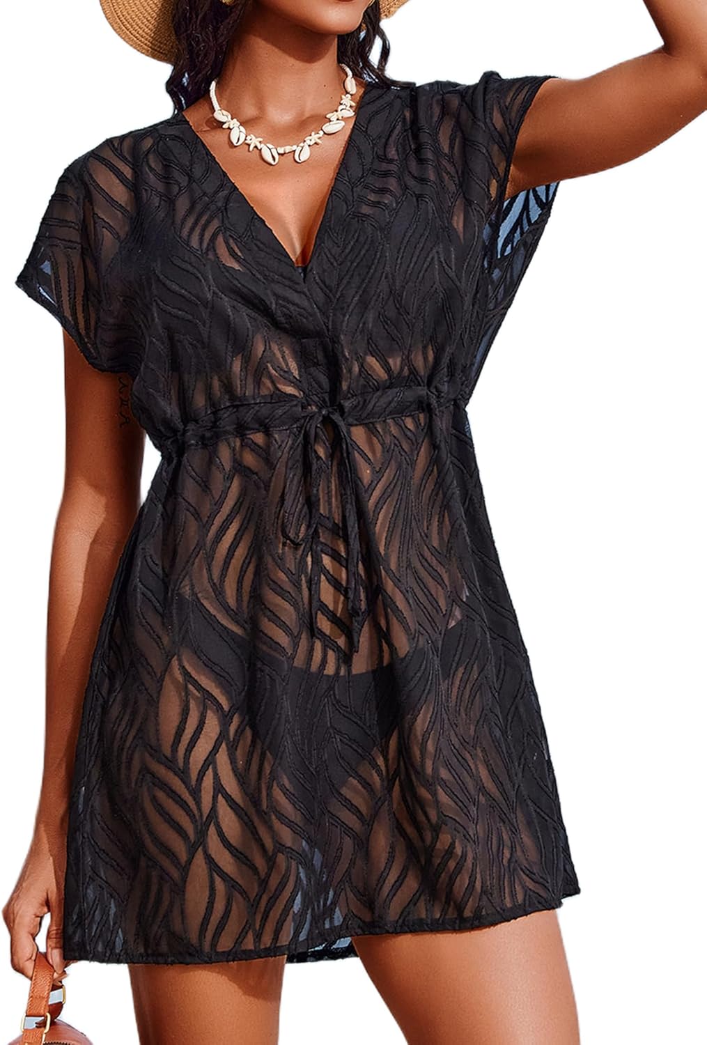 AI’MAGE Womens Bathing Suit Cover Up Lace Short Sleeve Swimsuit Coverups for Swimwear Sexy V Neck Beach Coverup