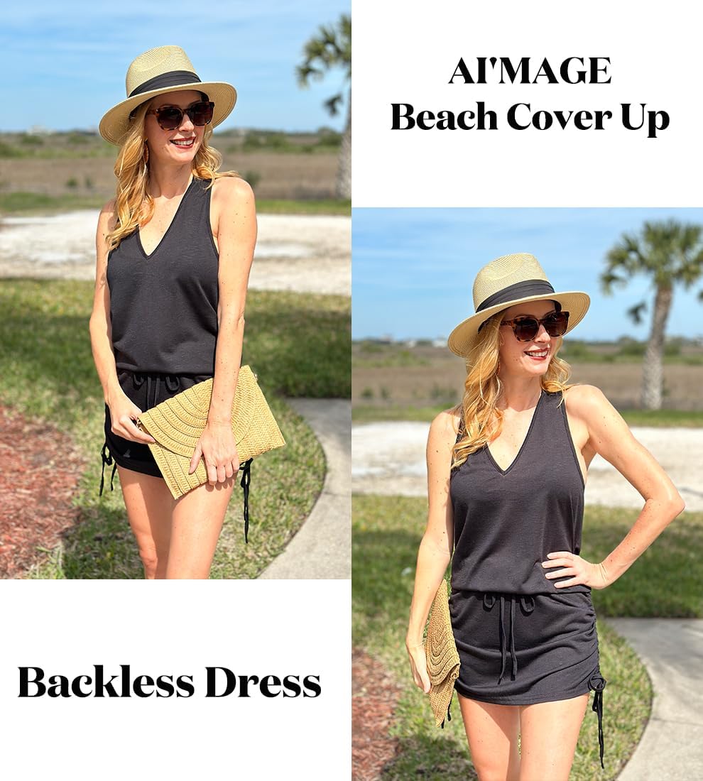 AI’MAGE Womens Swimsuit Cover Up Backless Coverups Sleeveless Beach Dress