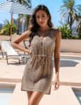 AI’MAGE Womens Crochet Cover Up Sleeveless Swimsuit Coverup Hollow Out Beach Dress with Drawstring