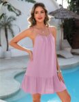 AI’MAGE Womens Swimsuit Cover Up Spaghetti Strap Backless Short Beach Bathing Suit Tank Dress with Ruffle Hem S-3XL
