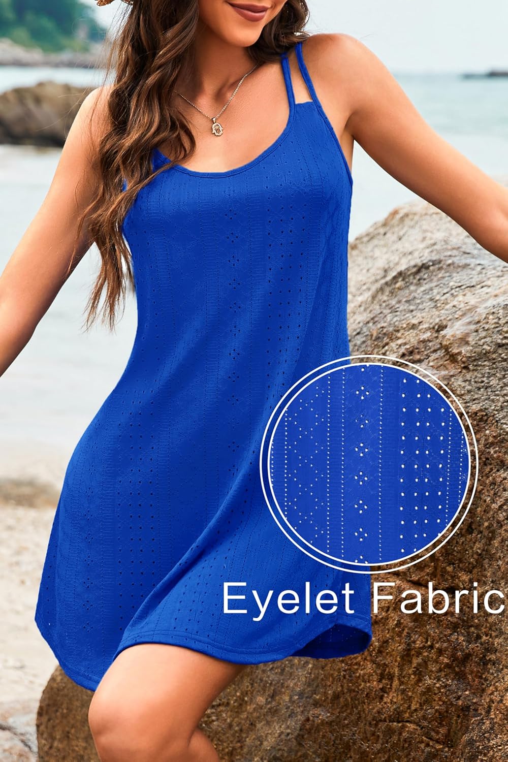 AI’MAGE Women’s Swimsuit Cover Up Spaghetti Strap Eyelet Bathing Suit Cover Ups Sleeveless Beach Cover Up Dress S-3XL