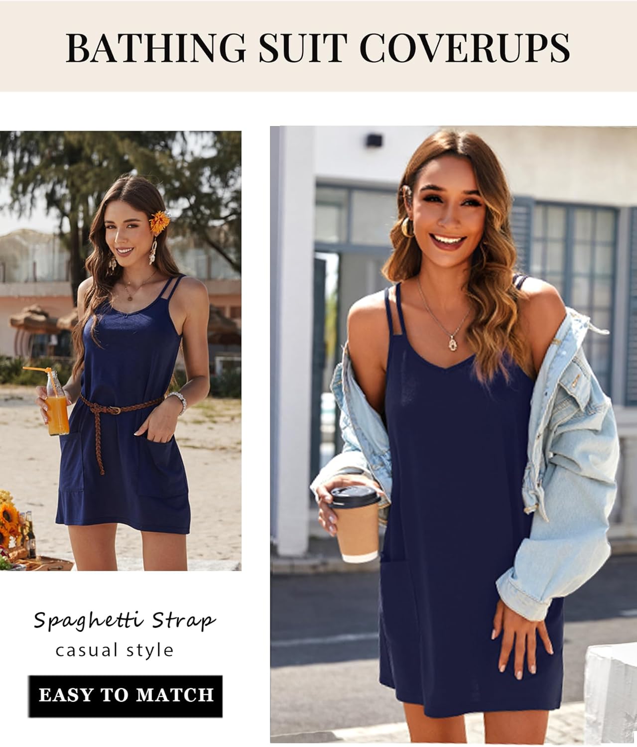 AI’MAGE Womens Swimsuit Coverup Spaghetti Strap Bathing Suit Cover Up Sleeveless Beach Cover Ups Summer Sundress with Pockets