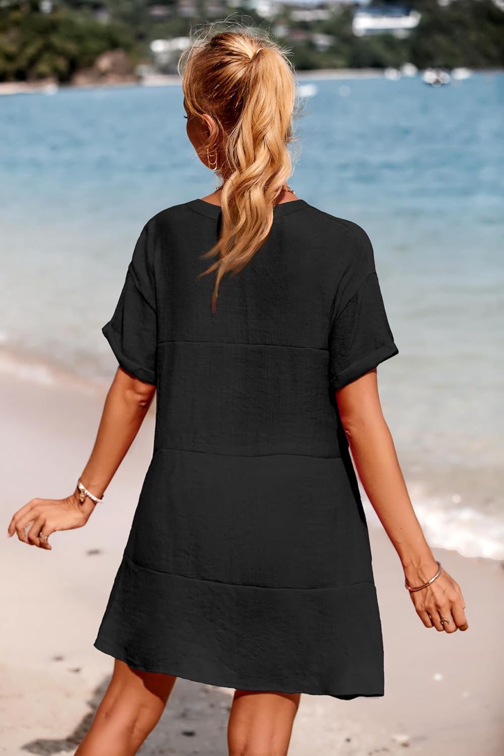AI’MAGE Women’s Swimsuit Coverups Bikini Beach Swimwear Cover Up A-line Bathing Suit Cover Up Dress with Pockets