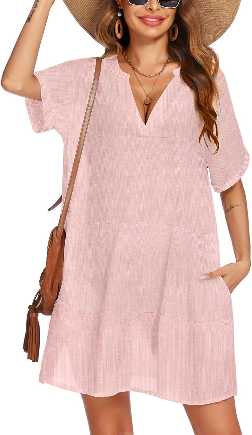 AI’MAGE Women’s Swimsuit Coverups Bikini Beach Swimwear Cover Up A-line Bathing Suit Cover Up Dress with Pockets
