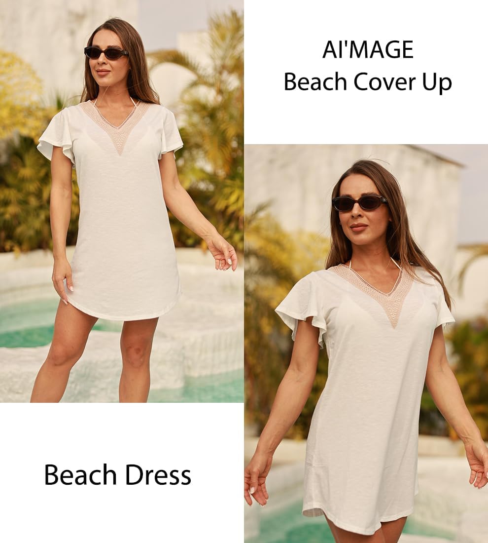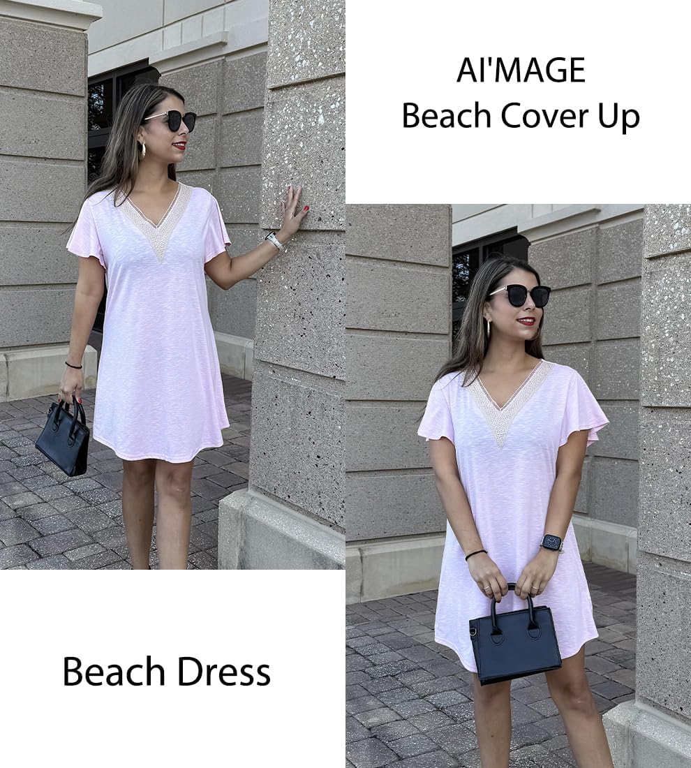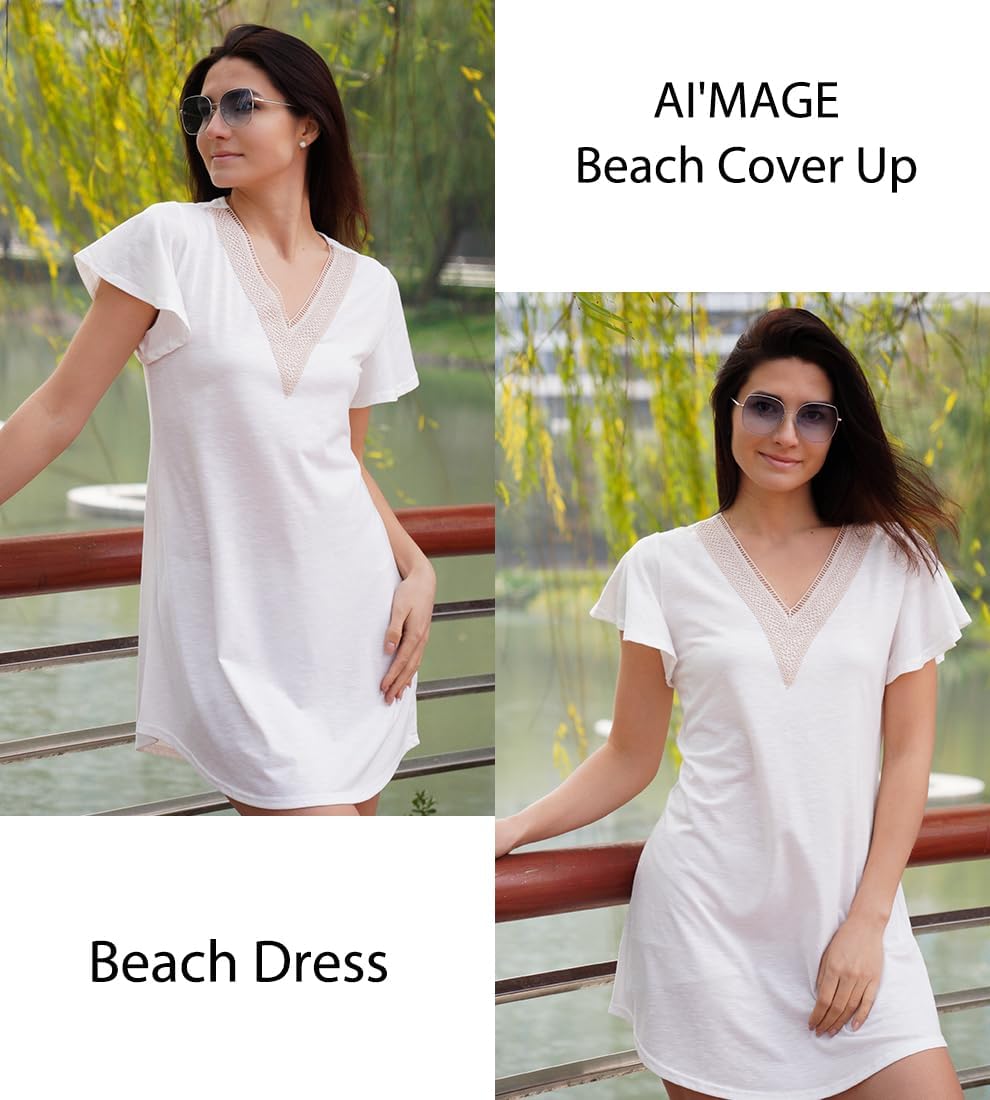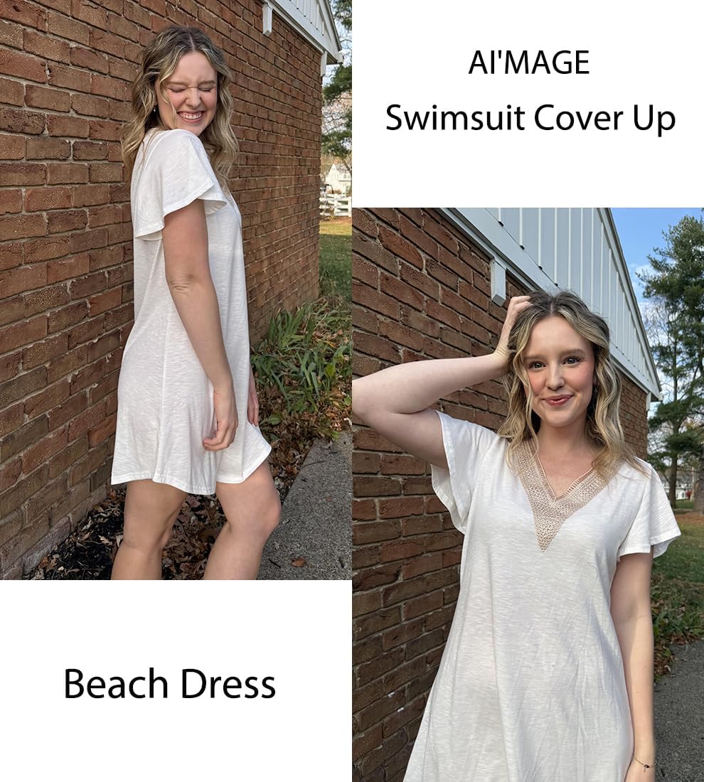 AI’MAGE Women’s Swimsuit Coverups Bikini Beach Swimwear Cover Up V Neck Bathing Suit Cover Up Beach Dress