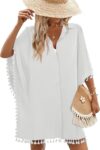 AI’MAGE Women’s Swimwear Cover Ups 3/4 Sleeve Beach Coverup with Tassel Button Down Oversized Swimsuit Cover Up Shirt S-3XL