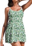 Aleumdr Women’s One Piece Swimsuit Floral Print Whip Stitch Tummy Control Swimdress Skirt Bathing Suit with Pocket