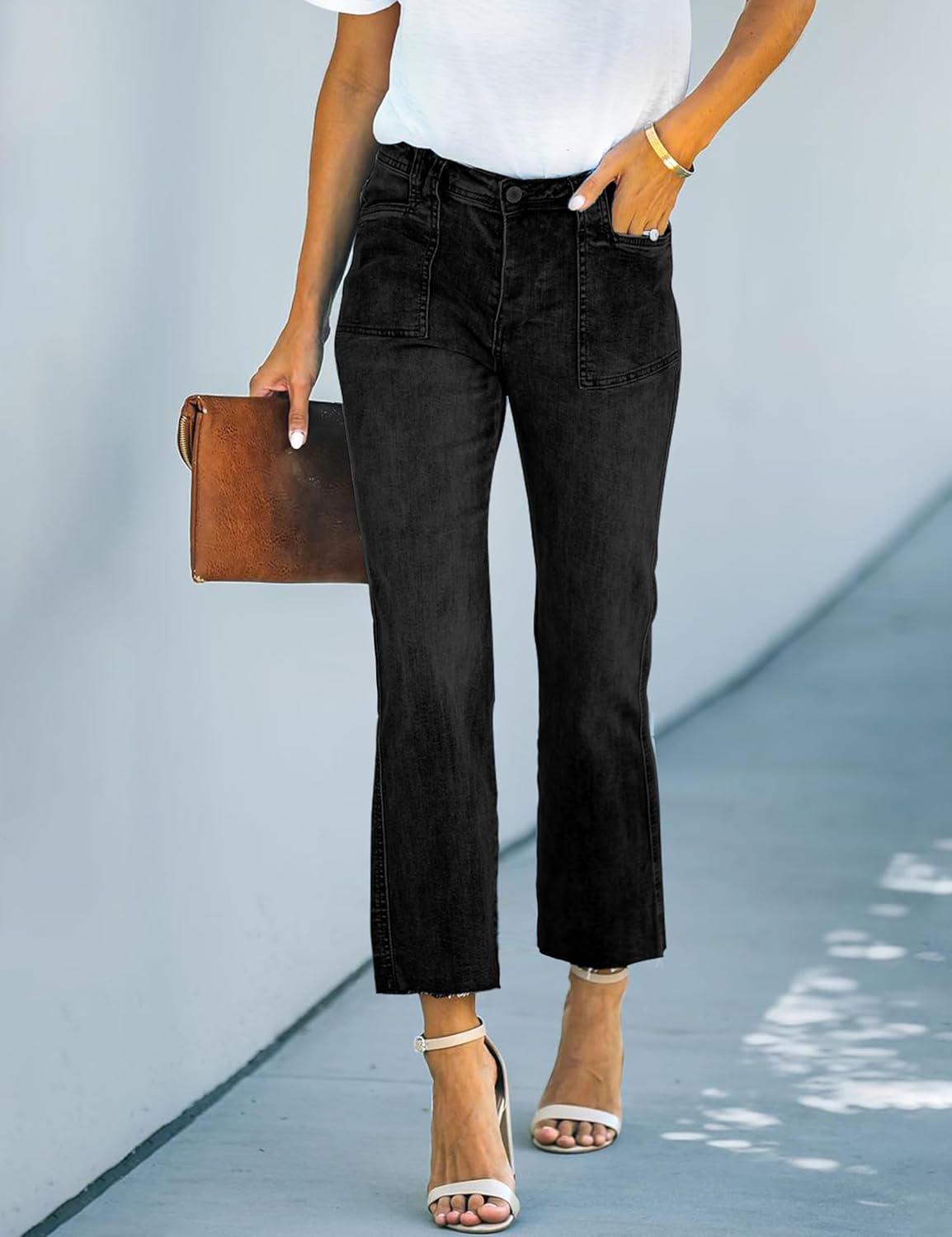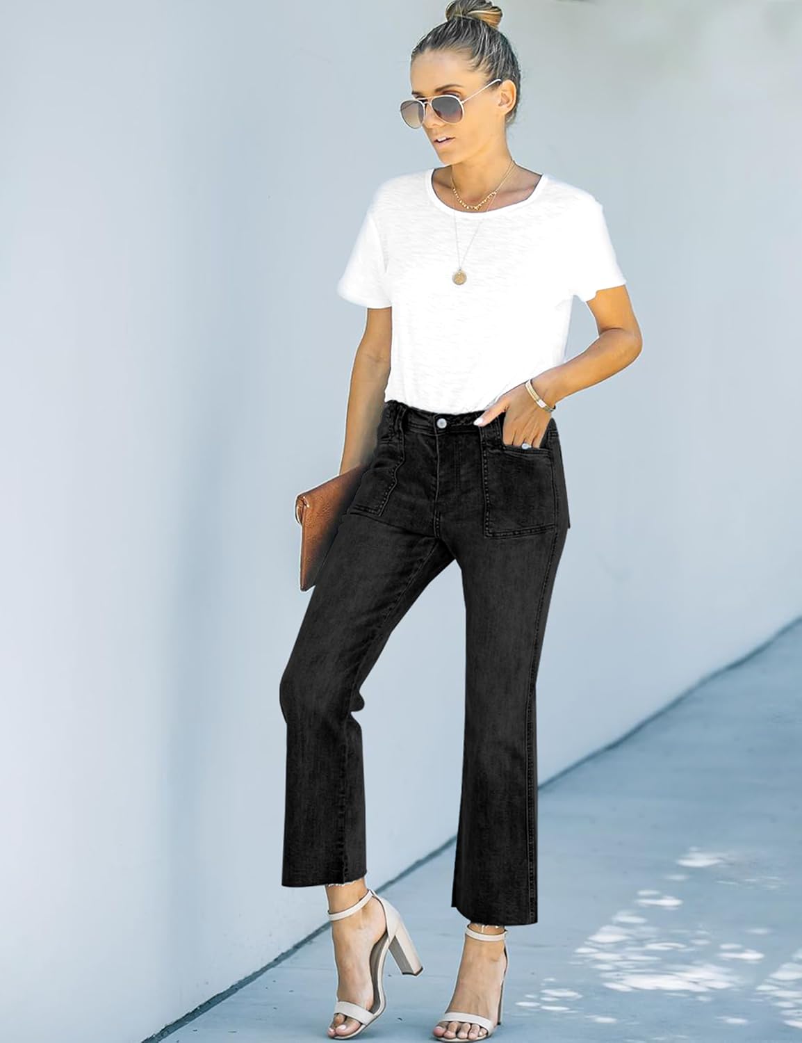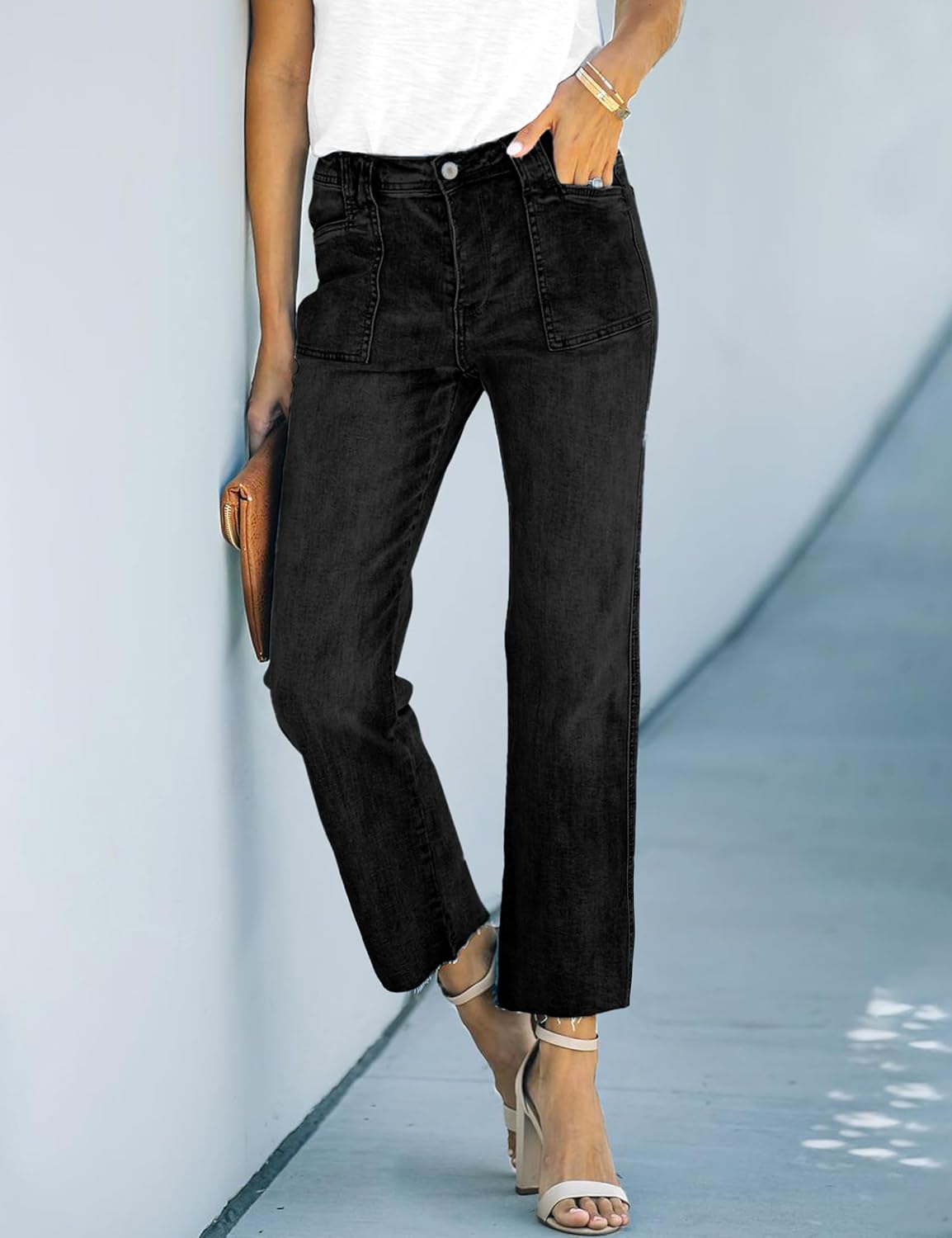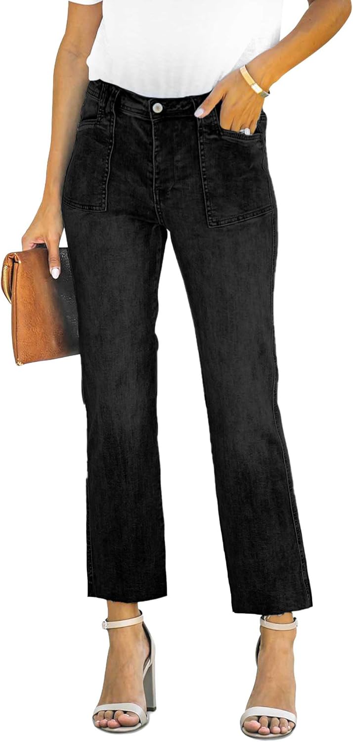 ALLABREVE Wide Leg Jeans for Women High Waisted Stretchy Denim Capri Pants Hem Cropped Baggy Straight Leg Jeans with Pocket