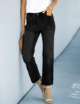 Customers find these jeans comfortable, stretchy, and of good quality, with a cute style. The fit and color receive mixed feedback, with some saying they fit perfectly while others find them not figure flattering.