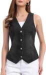 Allegra K V Neck Denim Vest for Women’s Sleeveless Button Down Jean Waistcoat Fashion Casual Jacket