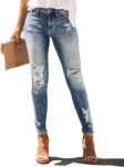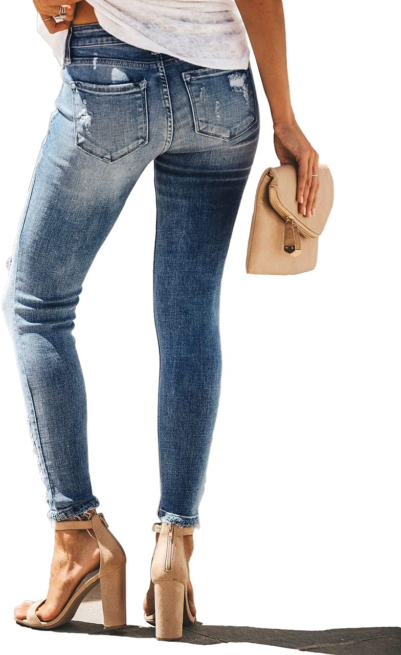 Allimy Women’s High Rise Skinny Stretch Ripped Jeans High Waisted Destroyed Denim Pants