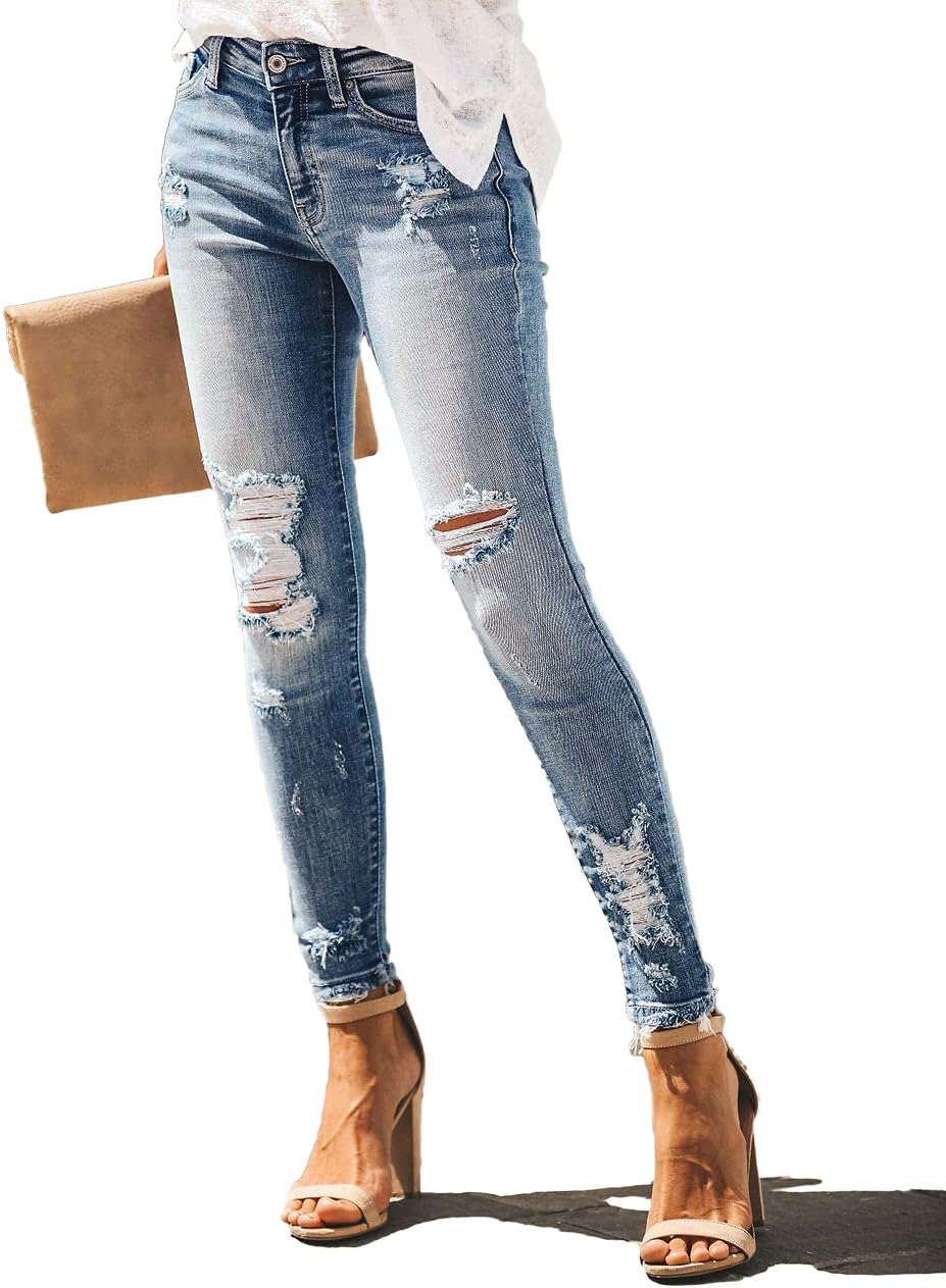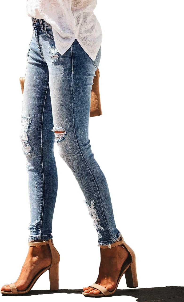 Allimy Women's High Rise Skinny Stretch Ripped Jeans High Waisted Destroyed Denim Pants