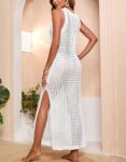 Alsol Lamesa Women’s Crochet Cover Up Hollow Out Side Split Sleeveless Long Beach Dress