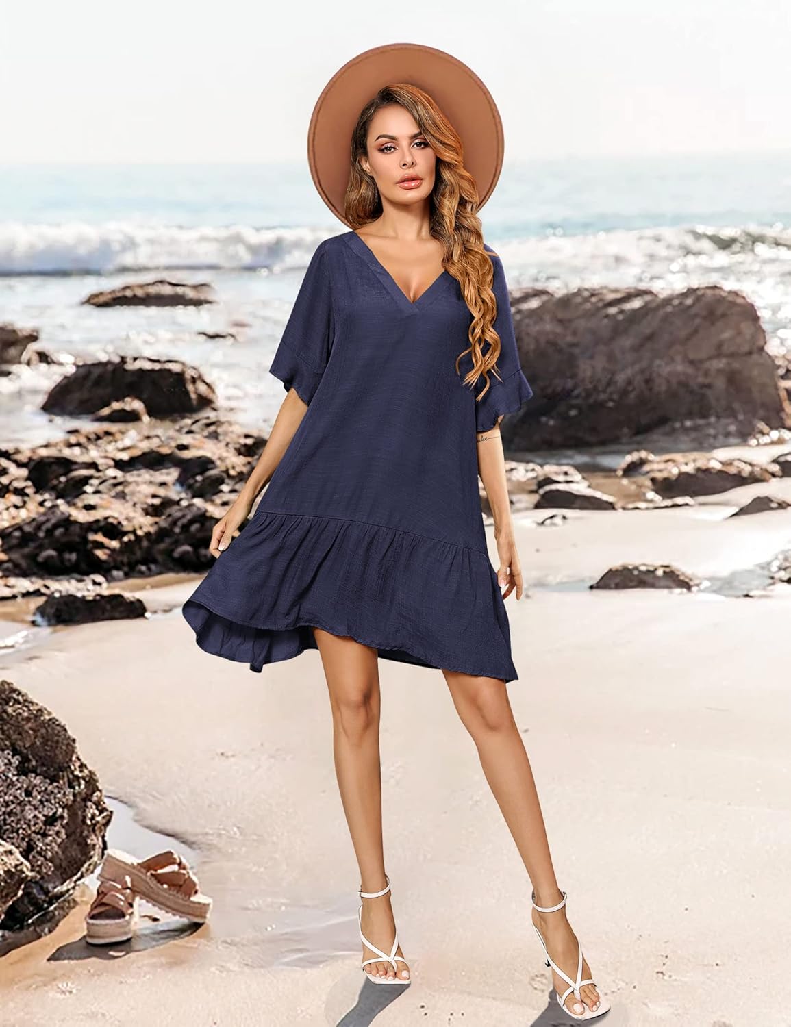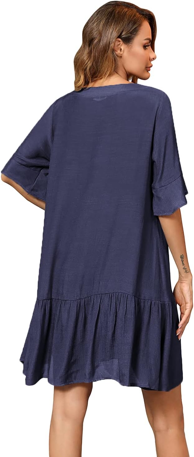Aoulaydo Womens Swimsuit Coverups Sexy V Neck Bathing Suit Cover Ups Casual Loose Cover Up for Swimwear
