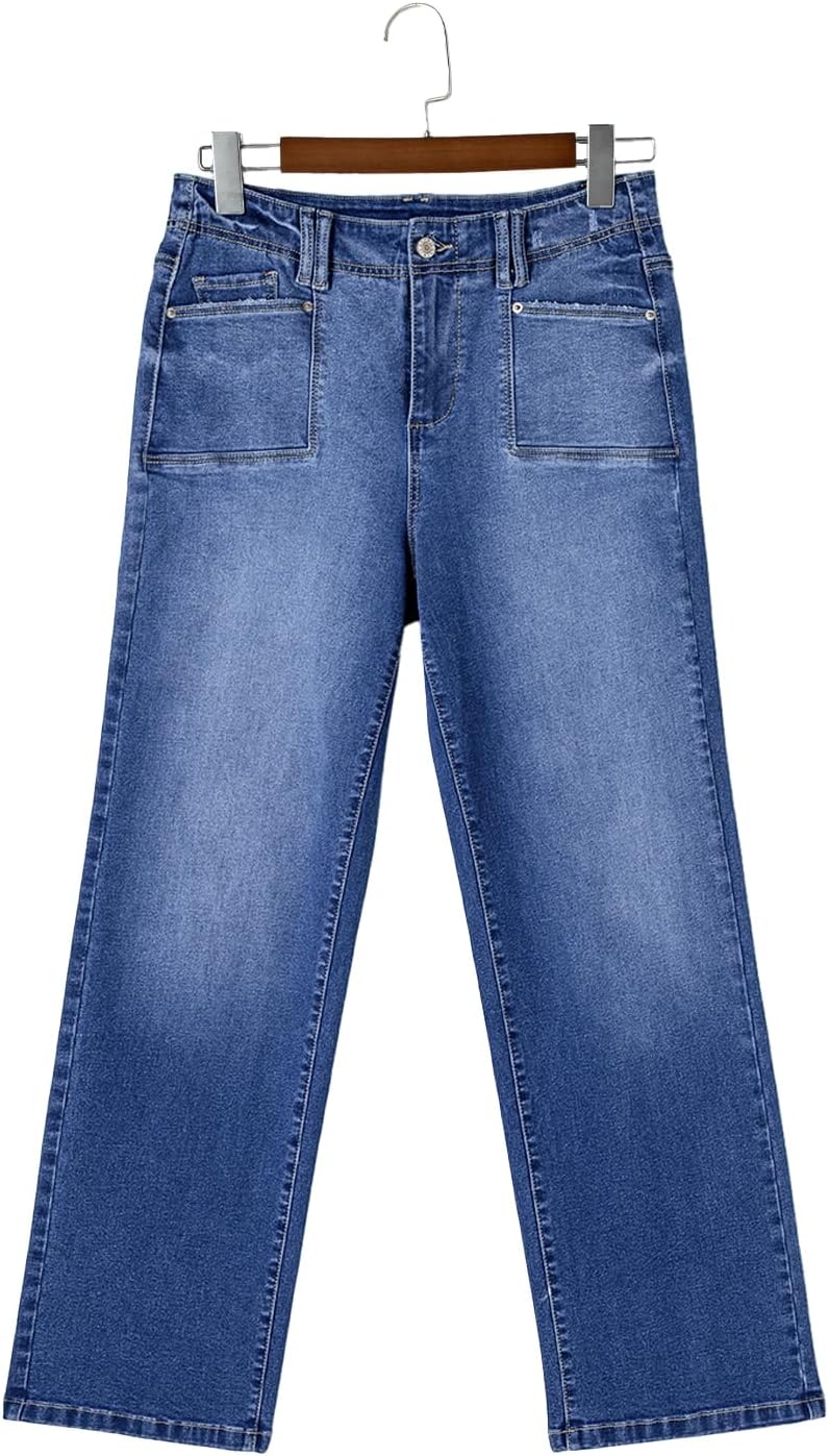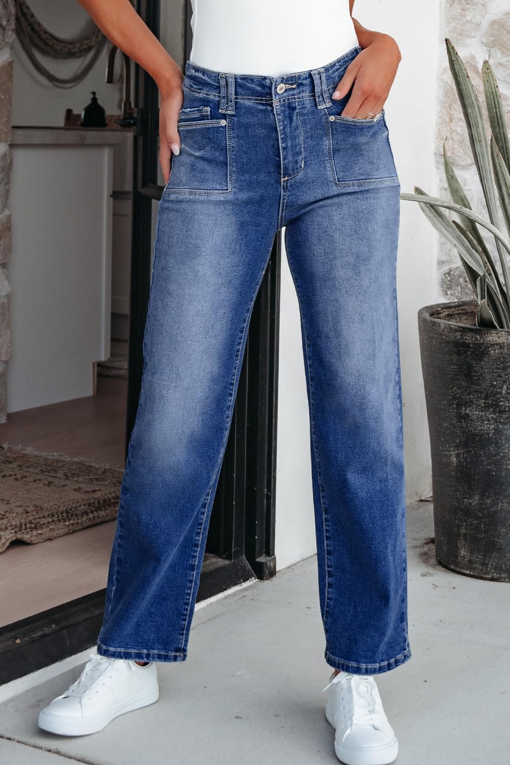 Astylish Womens Wide Leg Jeans High Waisted Stretchy Buttoned Denim Pants Trendy 2025 with Pocket