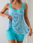 B2prity Tankini Swimsuits for Women Tummy Control Two Piece Modest Bathing Suits Floral Skirt Top with Boyshorts