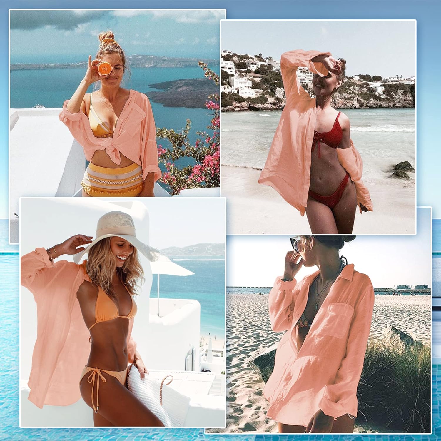 Bathing Suit Cover Ups for Women, Long Sleeve Swimwear Swimsuit Button Down Shirt Dress Bikini Beach Cover Up