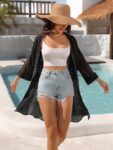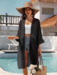 BB&KK Kimonos for Women Long Beach Cover Ups Summer Swimwear Sheer Boho Embroidery Open Front Floral Midi