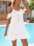 This swim cover up for women 2025 with cascading ruffles trim, cold shoulder and spaghetti strap make it become flowy and sexy, adding a flattering touch to this flowy women sundress.