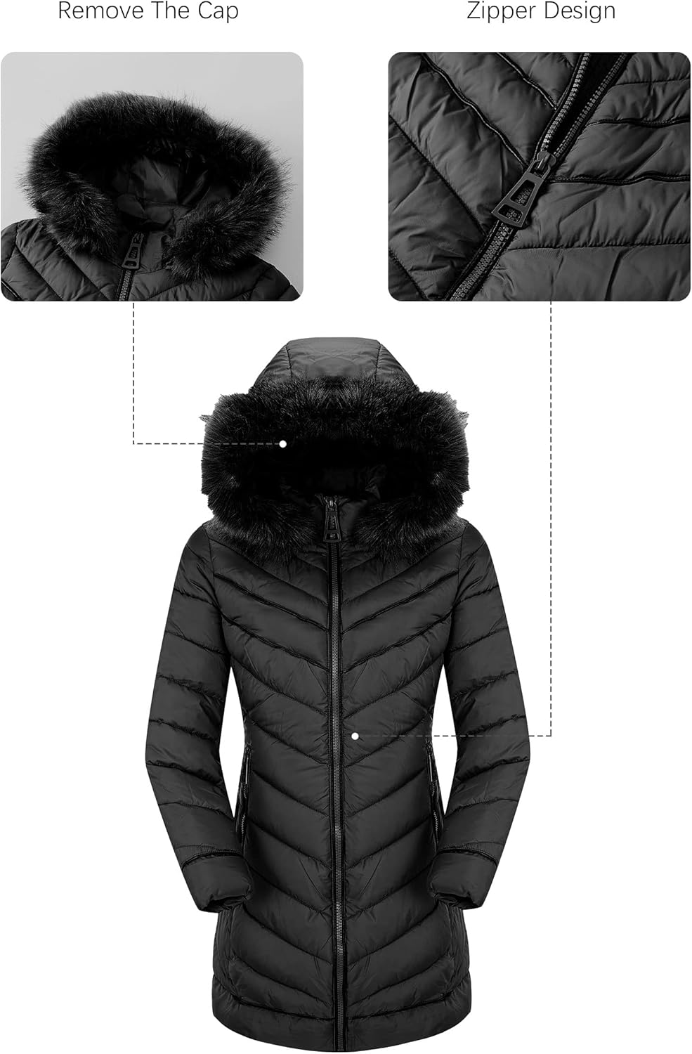 Bellivera Women’s Winter Thickened Quilted Puffer Jacket Zipper Pockets Bubble Coat with Removable Hood and Faux Fur Collar