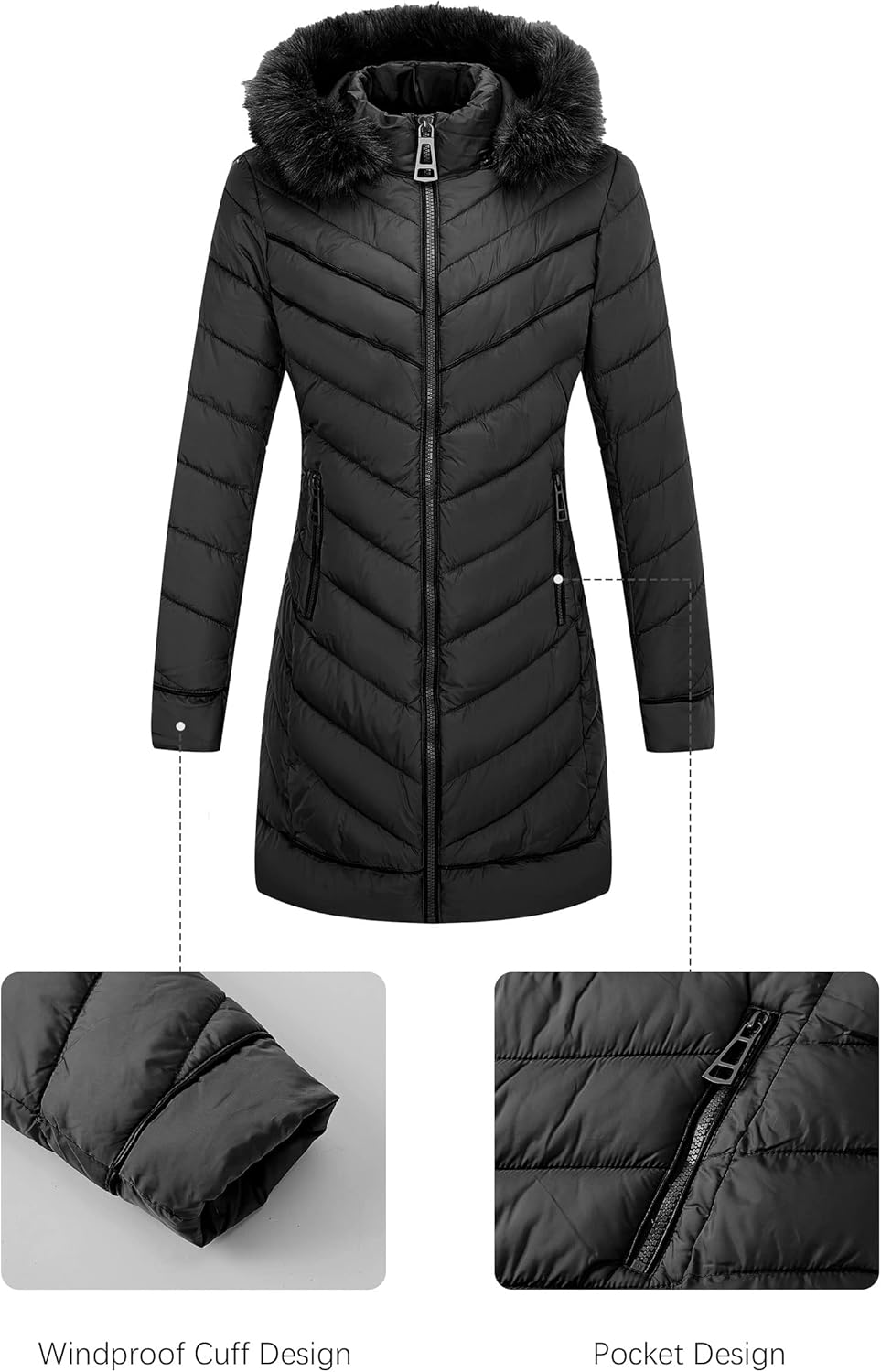 Our plus size puffer jacket is a versatile and stylish winter essential, designed to keep you warm and comfortable in any setting. With its mid-length silhouette, plush fur-trimmed hood, and functional pockets, it offers both elegance and practicality. Perfect for layering and transitioning between various winter activities, this jacket is a must-have for any woman seeking to stay fashionable and cozy throughout the season.