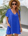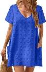 Blooming Jelly Womens Casual Sun Summer Dresses Swiss Polka Dot Beach Cover Up V Neck Tank Dress with Pockets