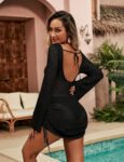 Customers find the swimsuit cover-up flattering, with one noting it’s particularly suitable for skinny women, and appreciate its adjustable length and soft, comfortable material. The cover-up is perfect for summer beachwear, lightweight, and doesn’t get hot. The material quality receives mixed feedback, with some praising its quality while others find it cheap.