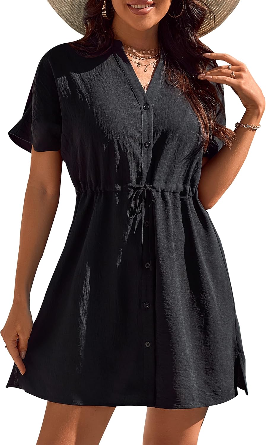Blooming Jelly Women’s Swimsuit Cover Ups Button Down Bathing Suit Coverups Bikini Beach Dress for Swimwear