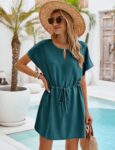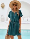 Bluetime Women Casual Summer Swimsuit Coverup Bikini Beachwear Coverups Flowy Short Sleeve Beach Dress