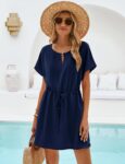 Bluetime Women Casual Summer Swimsuit Coverup Bikini Beachwear Coverups Flowy Short Sleeve Beach Dress