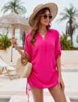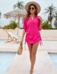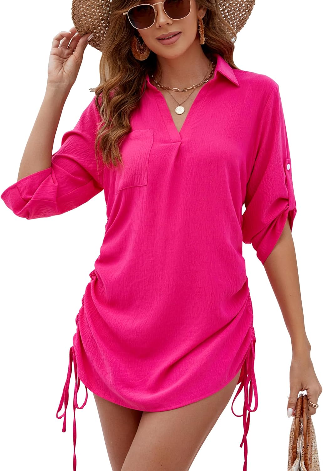 Beach cover ups for women,classic quarter sleeve, the optional roll up/down sleeves offer more sun protection if needed and it holds up with a strap and button. Adjustable drawstring side ties, allowing you to customize the fit to accentuate your curves.
